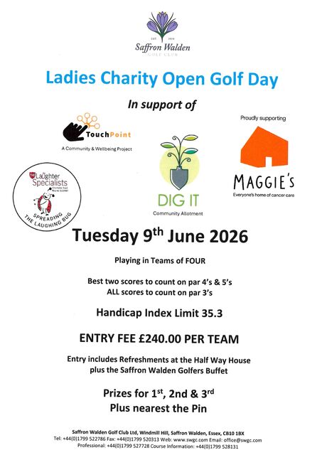 Tuesday 9th June 2026 - Saffron Walden Golf Course, Red Tees